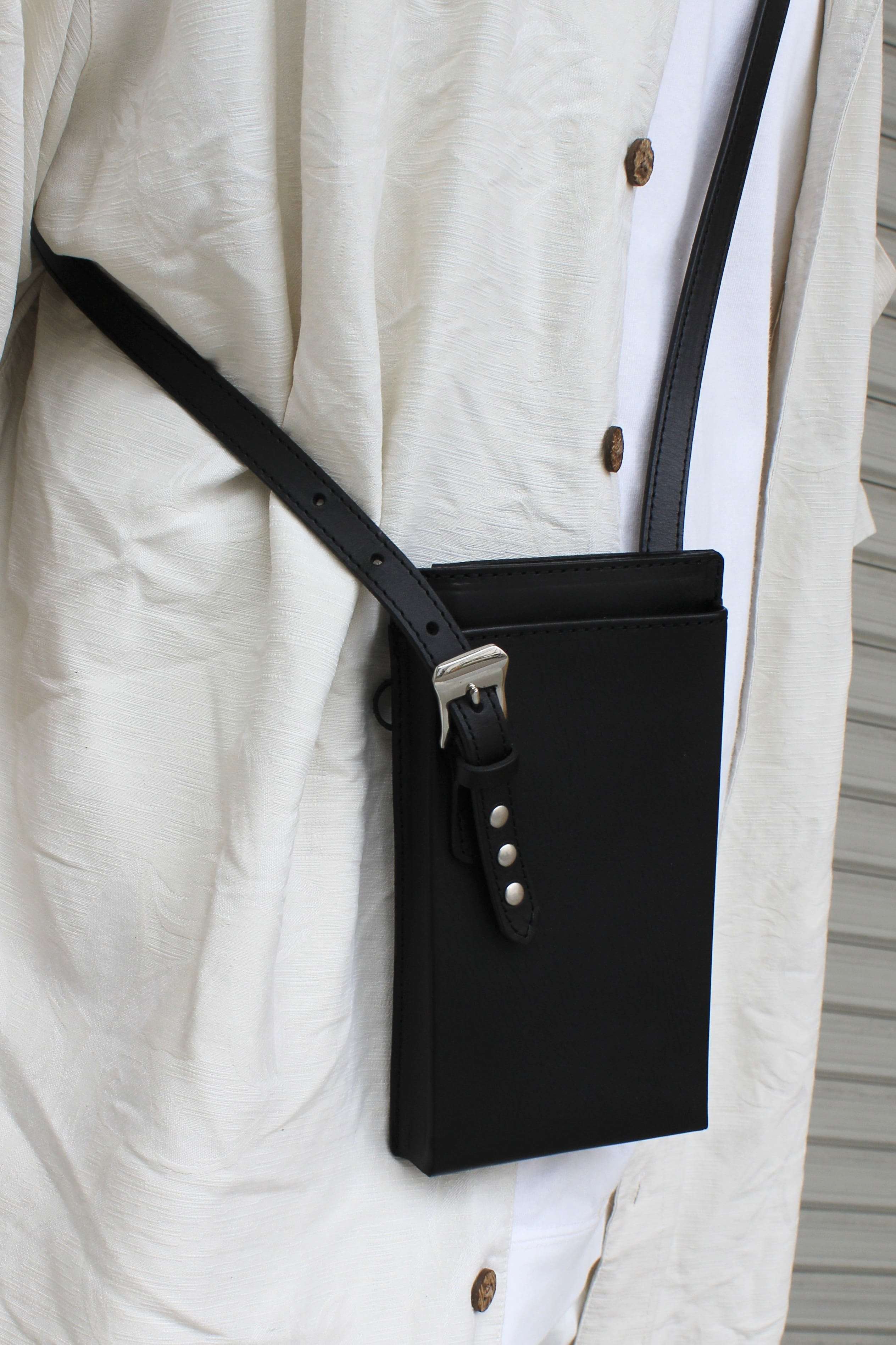 シルバー色のバックルやカシメを使い、直線的で洗練されたデザインで、ユニセックスでお使いいただけるアイテムです。