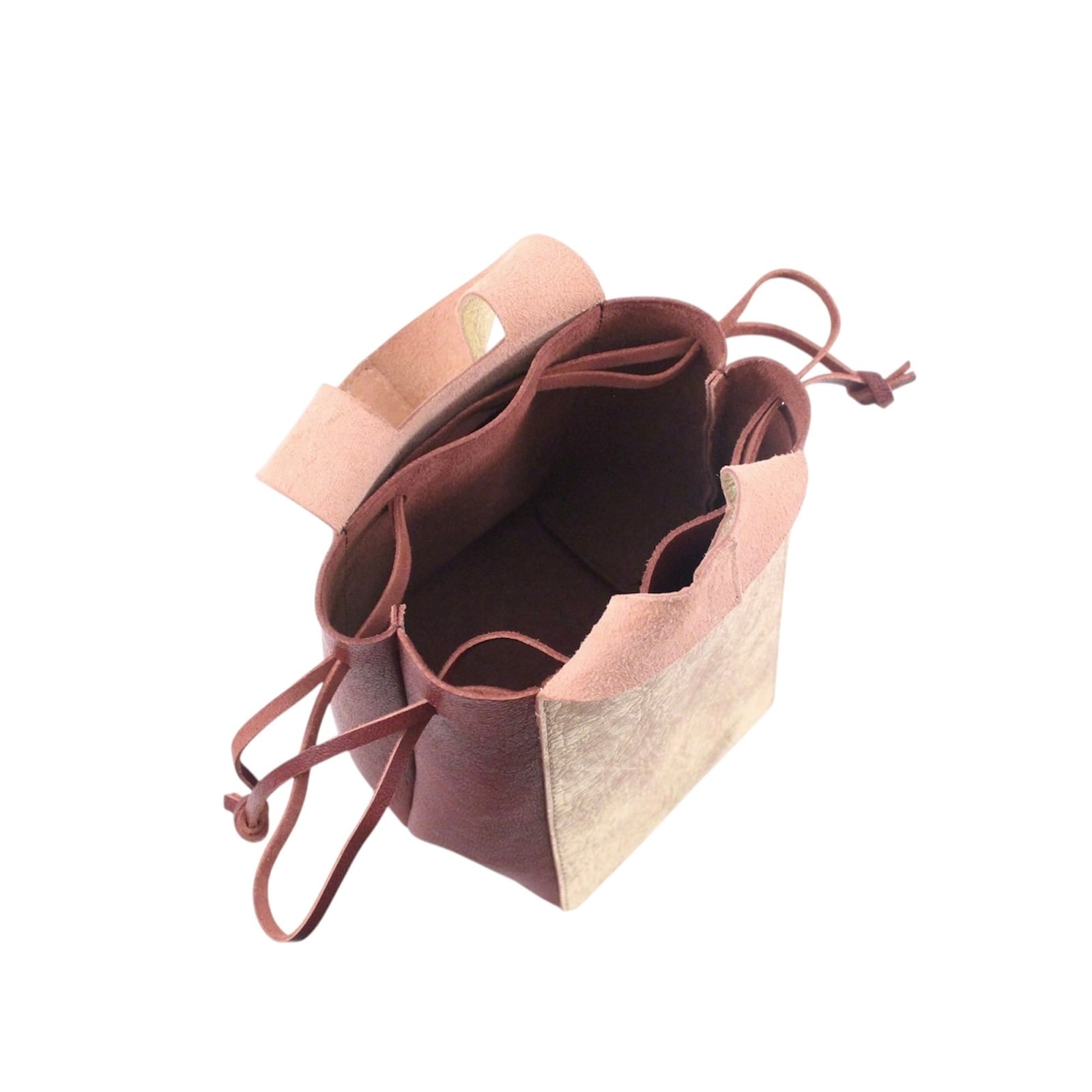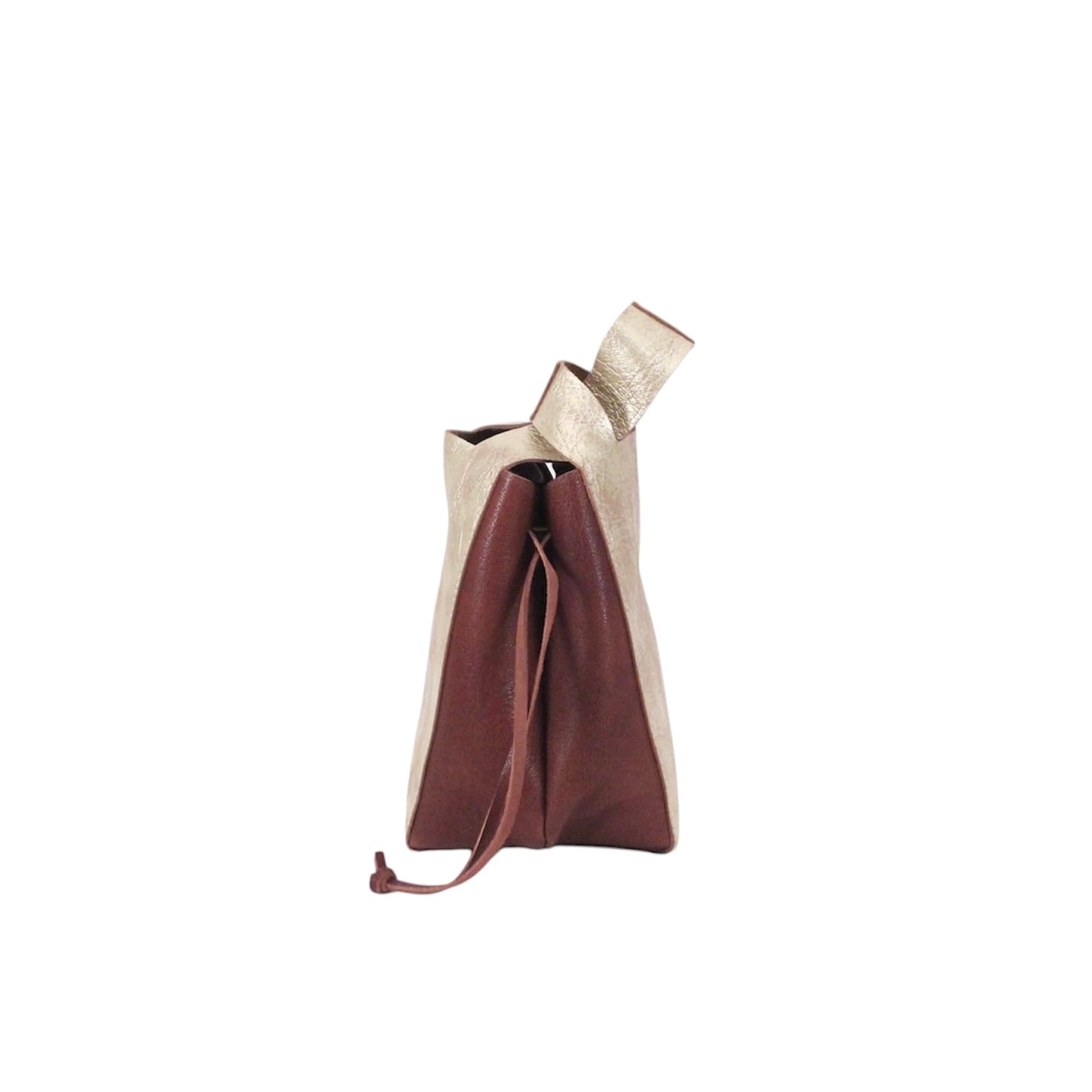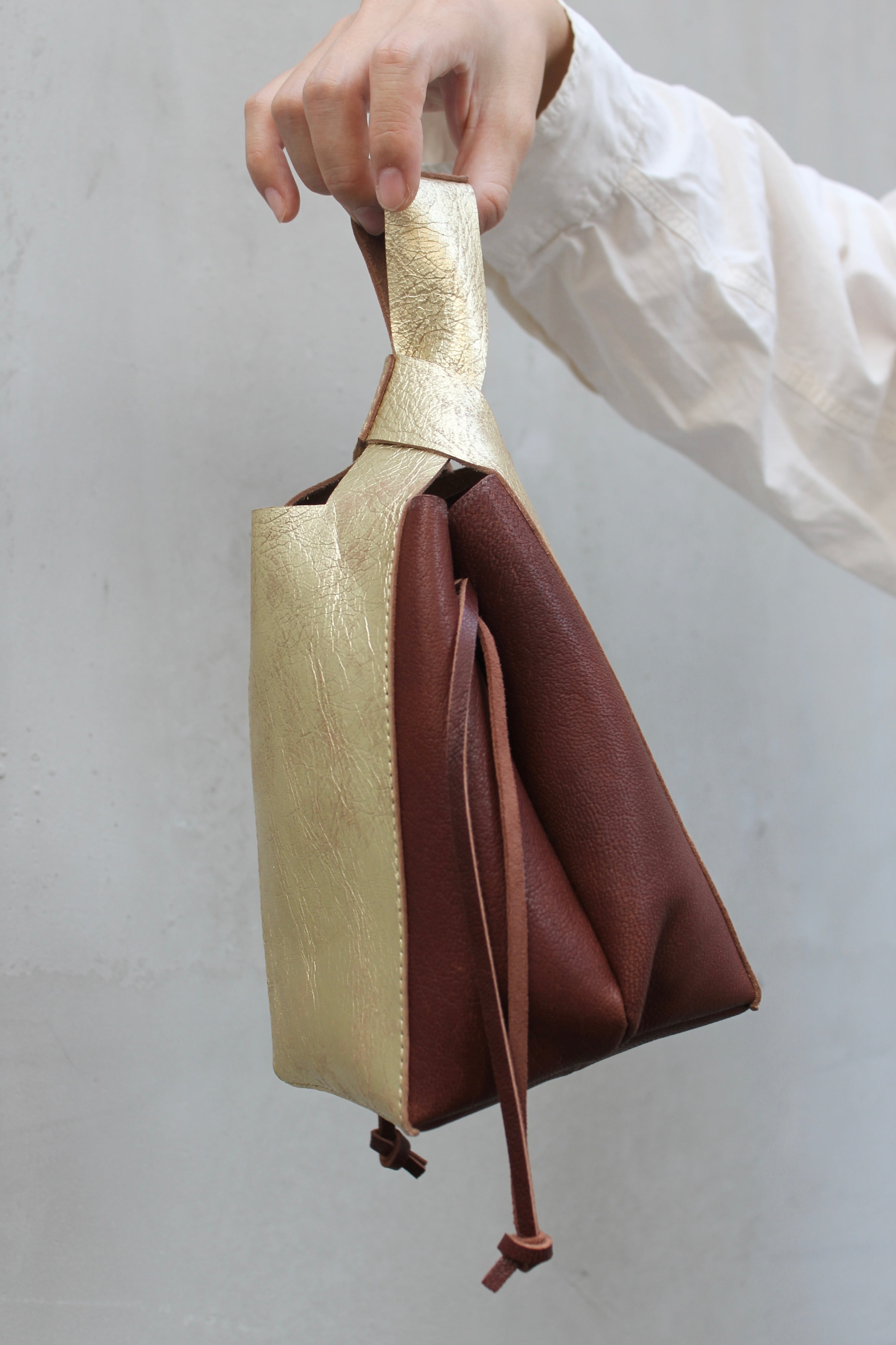 サイドのコードを絞ることで巾着特有の柔らかい丸みを出せます