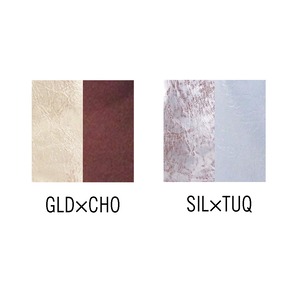 ・革の表面に金銀の箔を施し、更に手作業でやすりをかける事で独特のムラ感と光沢のある革です。お使いいただく中で少しずつ箔が擦れていき、本来の革の表情があらわれてきます。テープなどの粘着性のものに触れた場合、箔が剥がれてしまします。お取り扱いにはご注意ください。