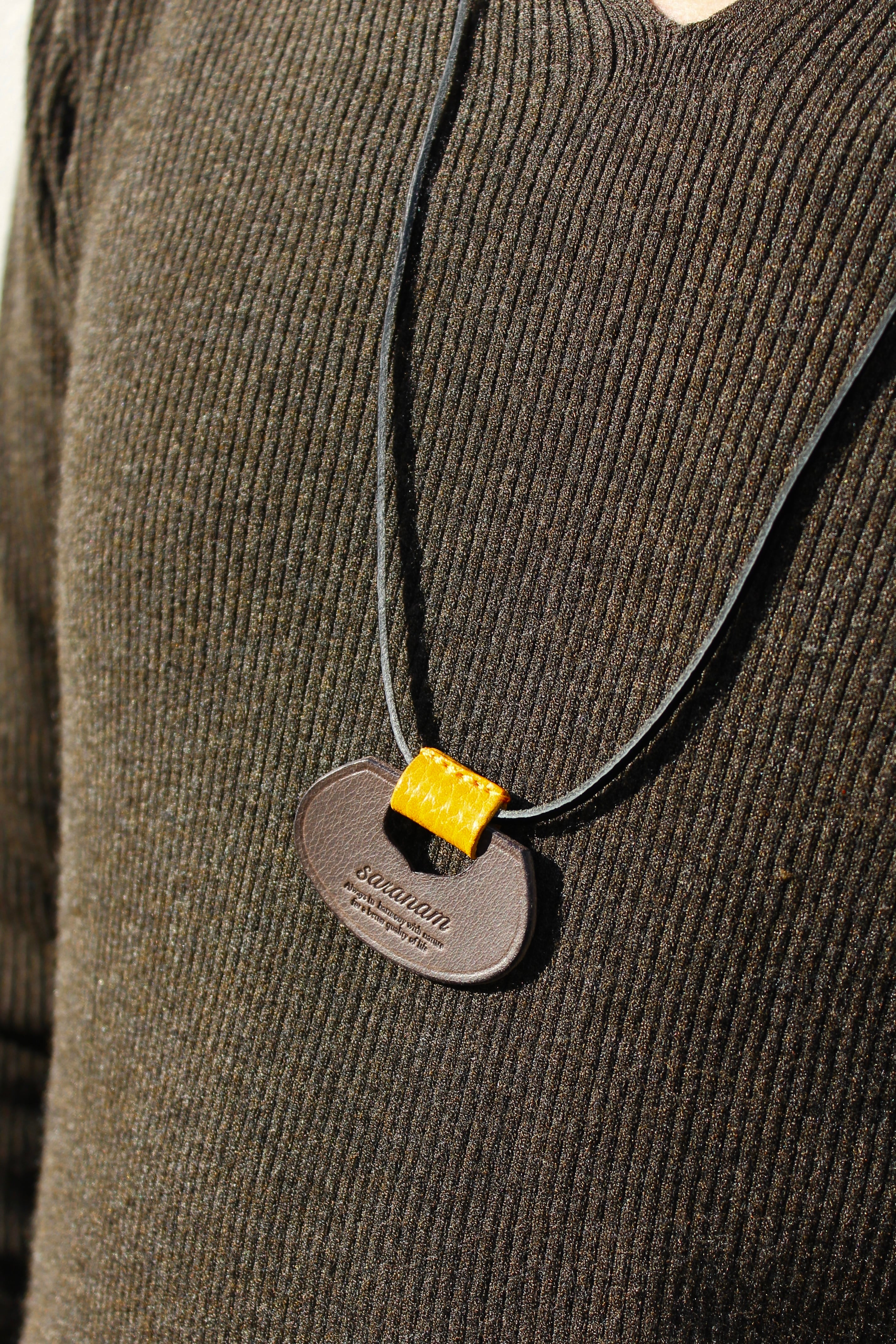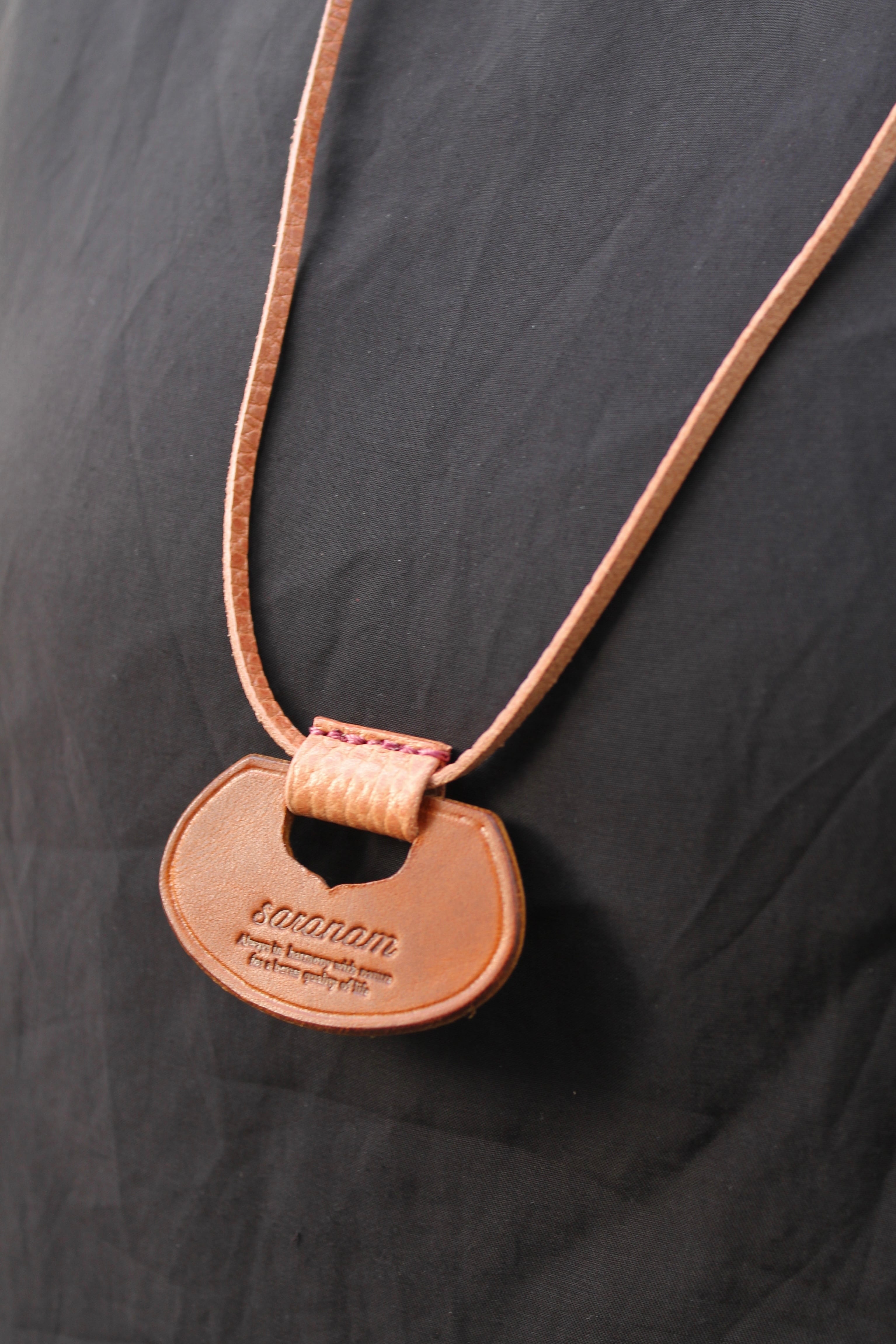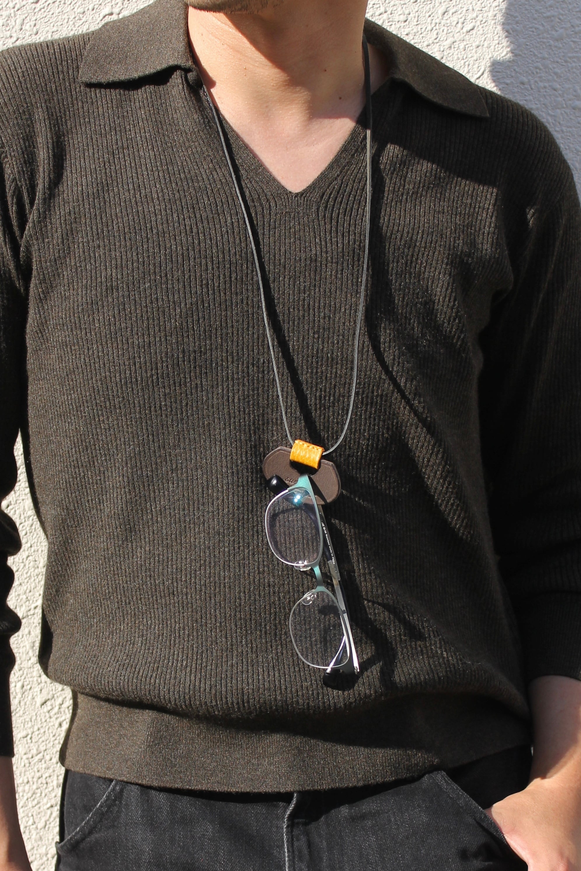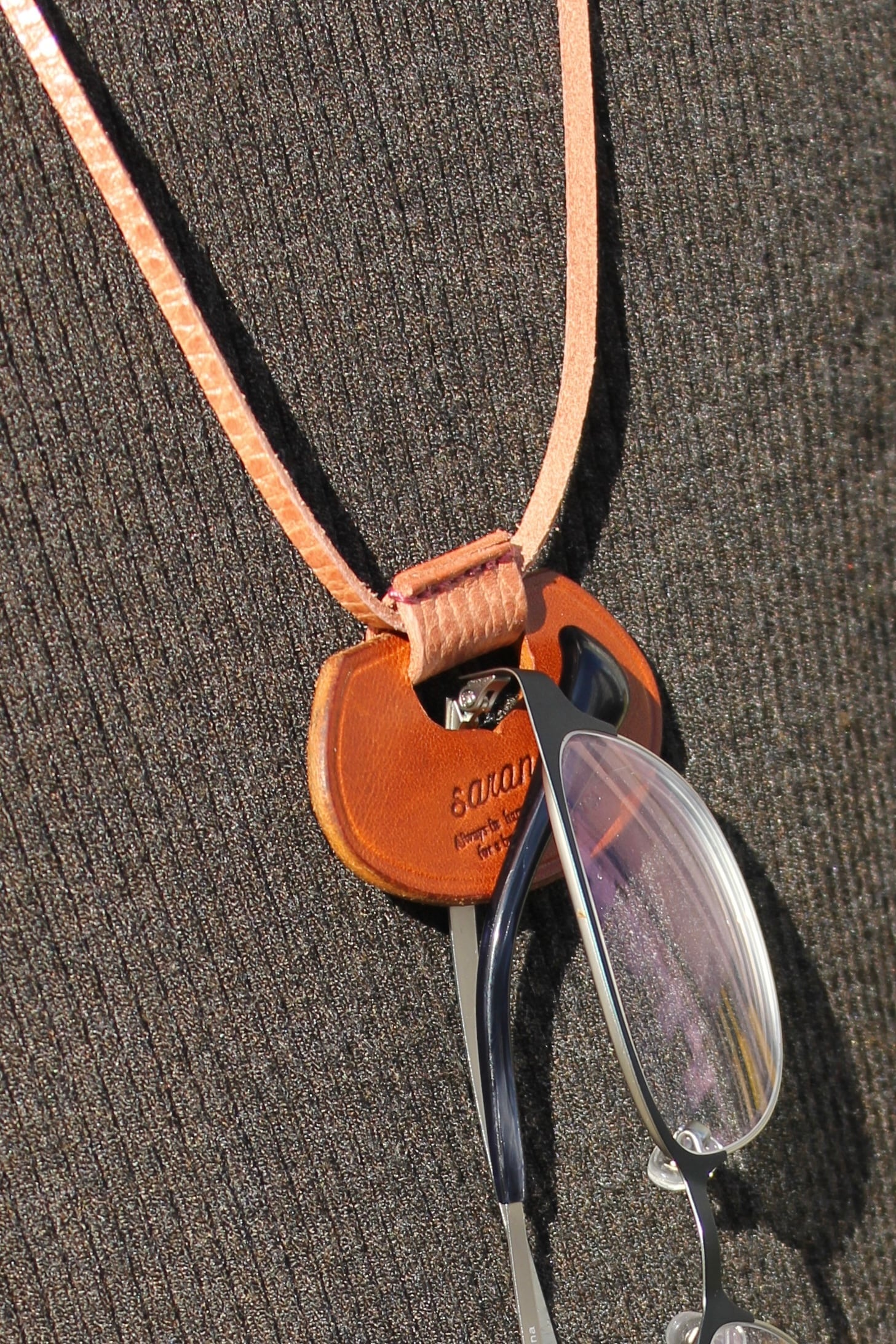 メガネを通すホールは2センチで、saranamのサイフなどで使用しているフラップのデザインを取り入れています