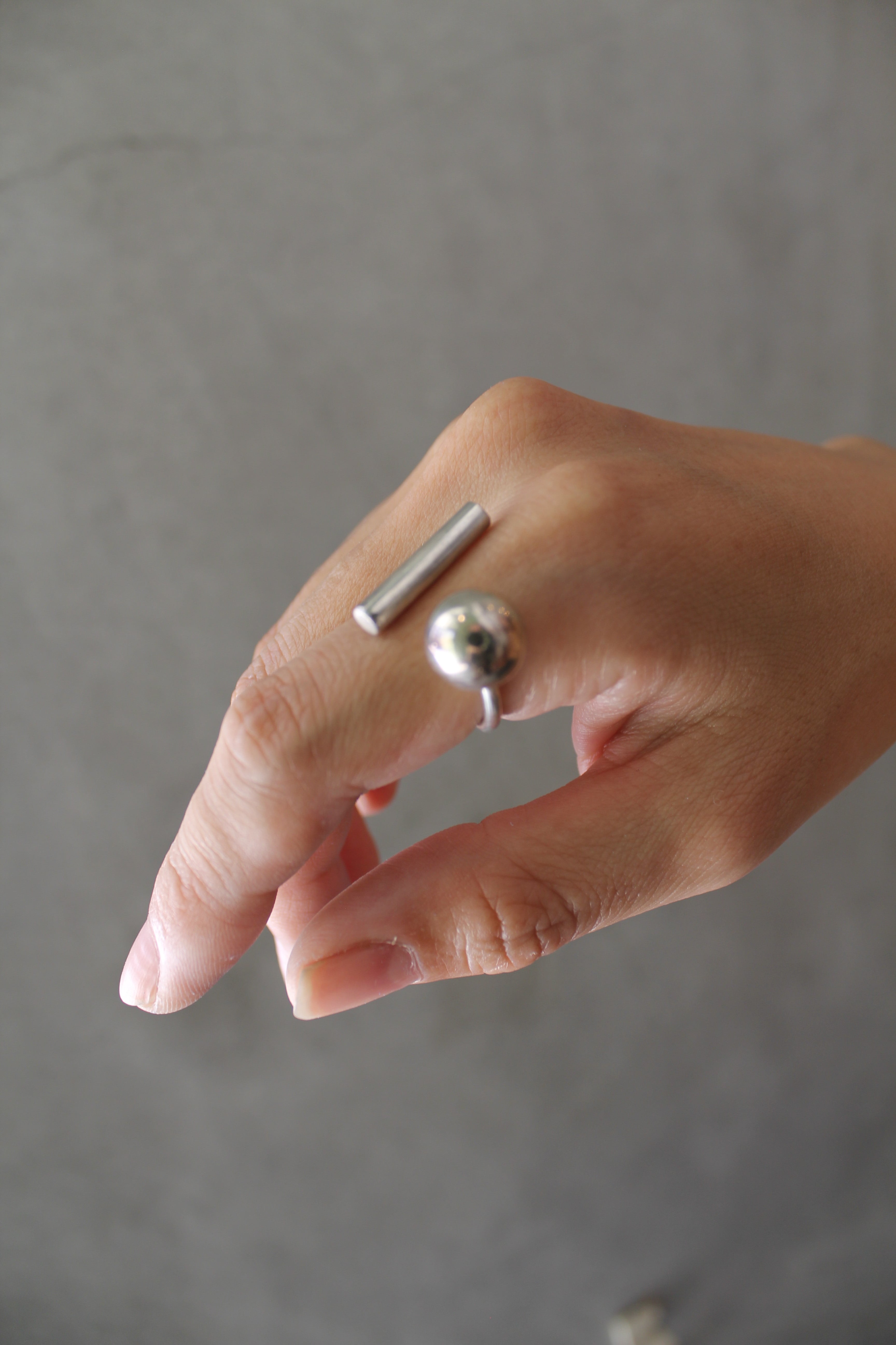大きめの点と線のパーツが指に乗っているかようで個性的です。