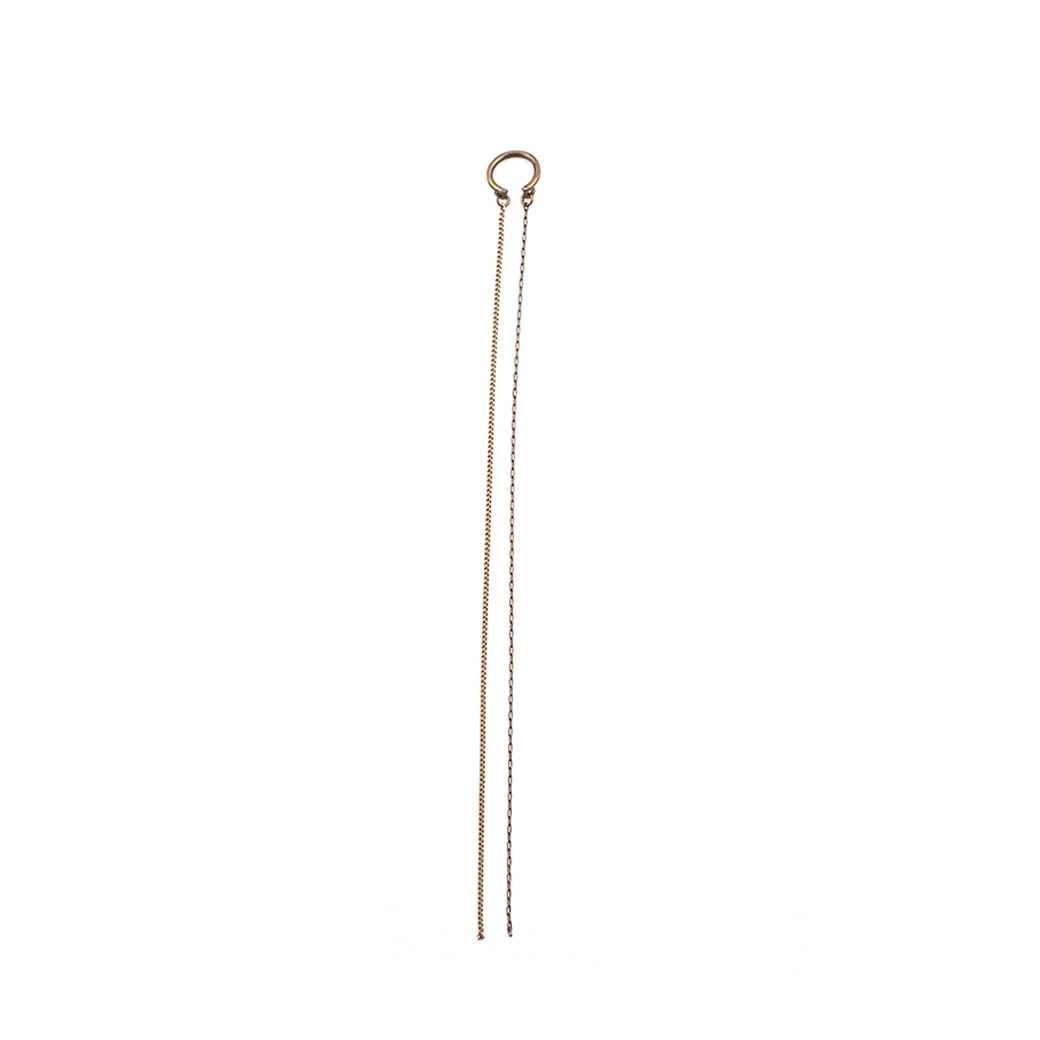 デザインの違うチェーンを長めにとって耳の前後から垂れ下がるデザインです。