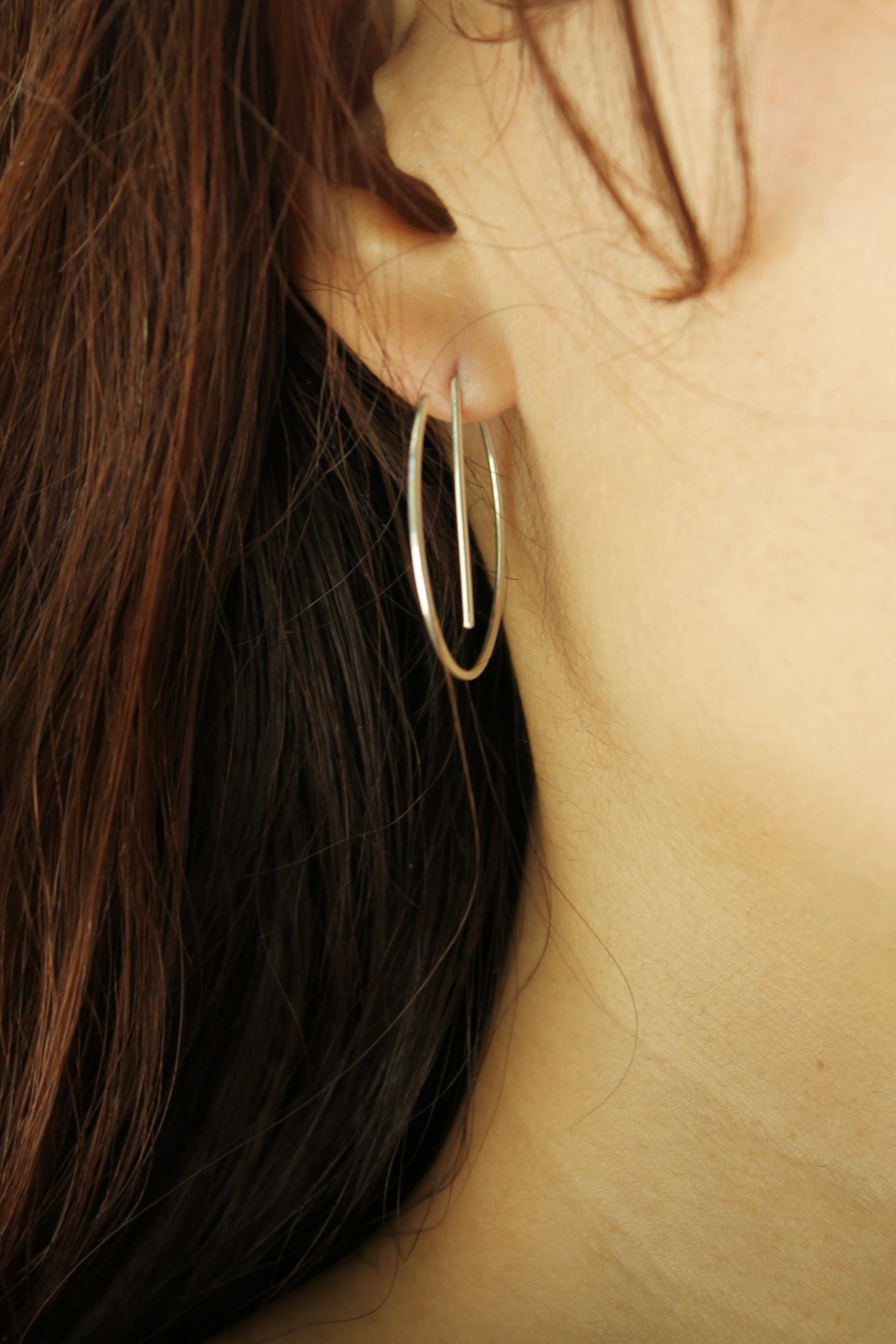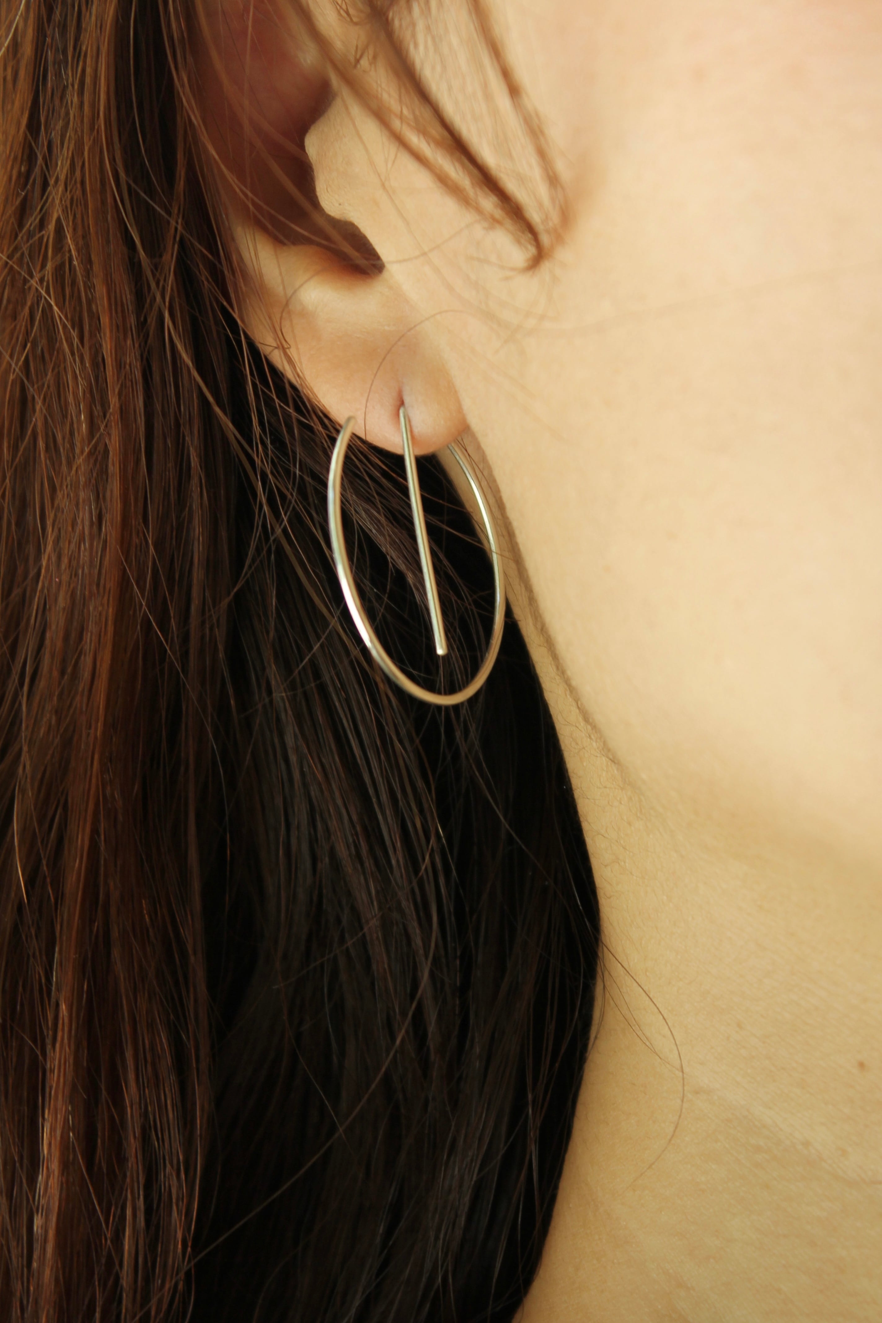 丸まった先端の方からぐるりとピアスホールに通していただき