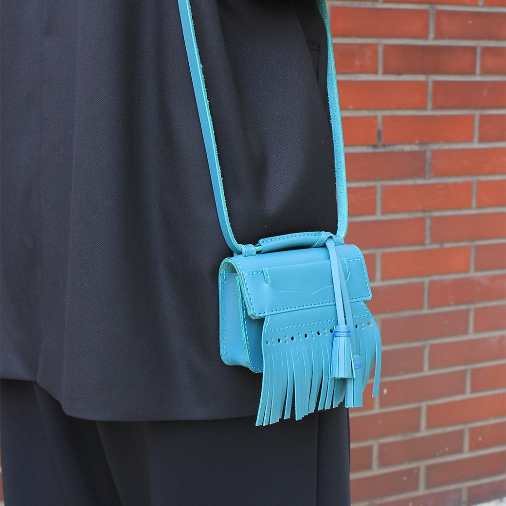 手のひらに収まるコンパクトなサイズ感で、アクセサリー感覚で身に付けれるミニバッグです