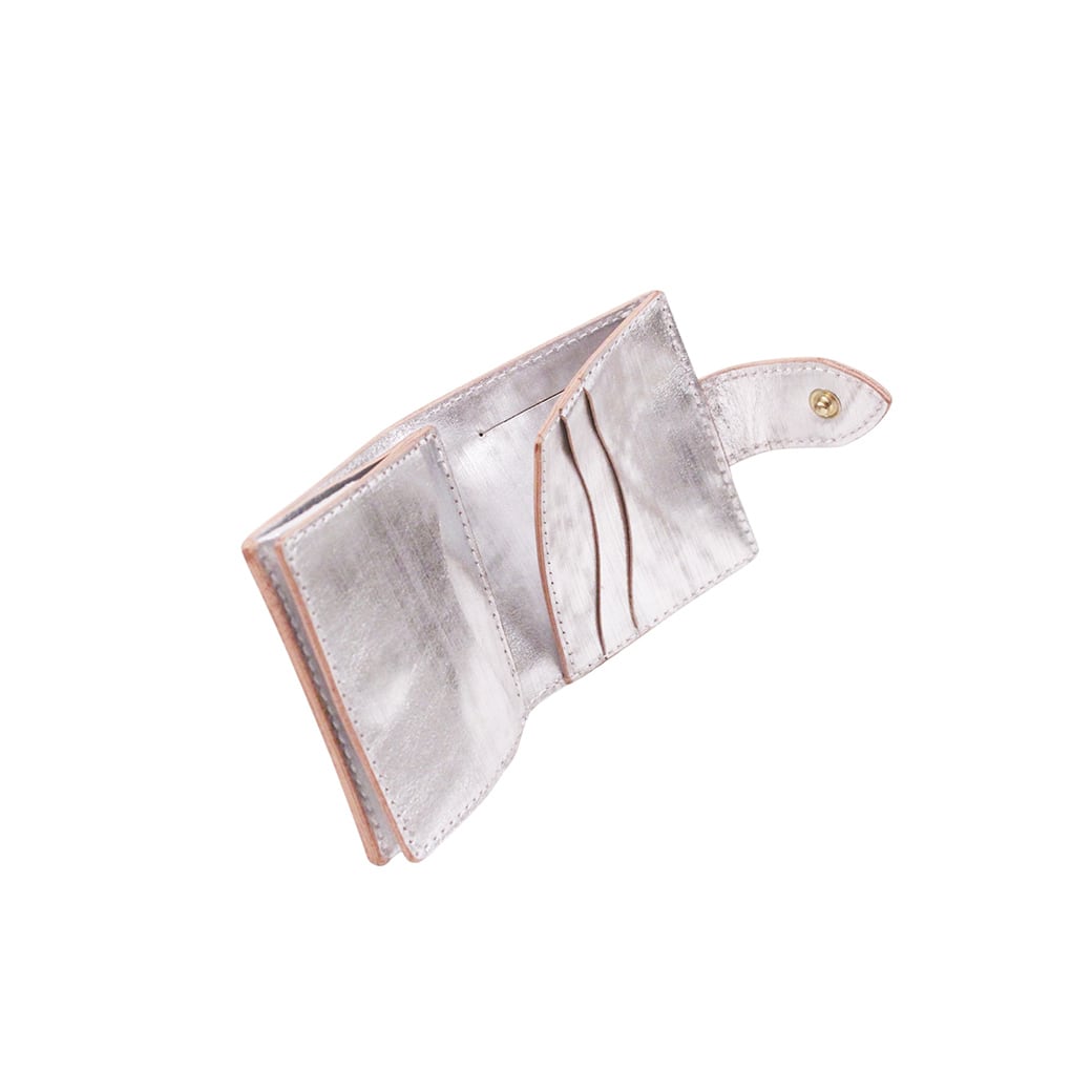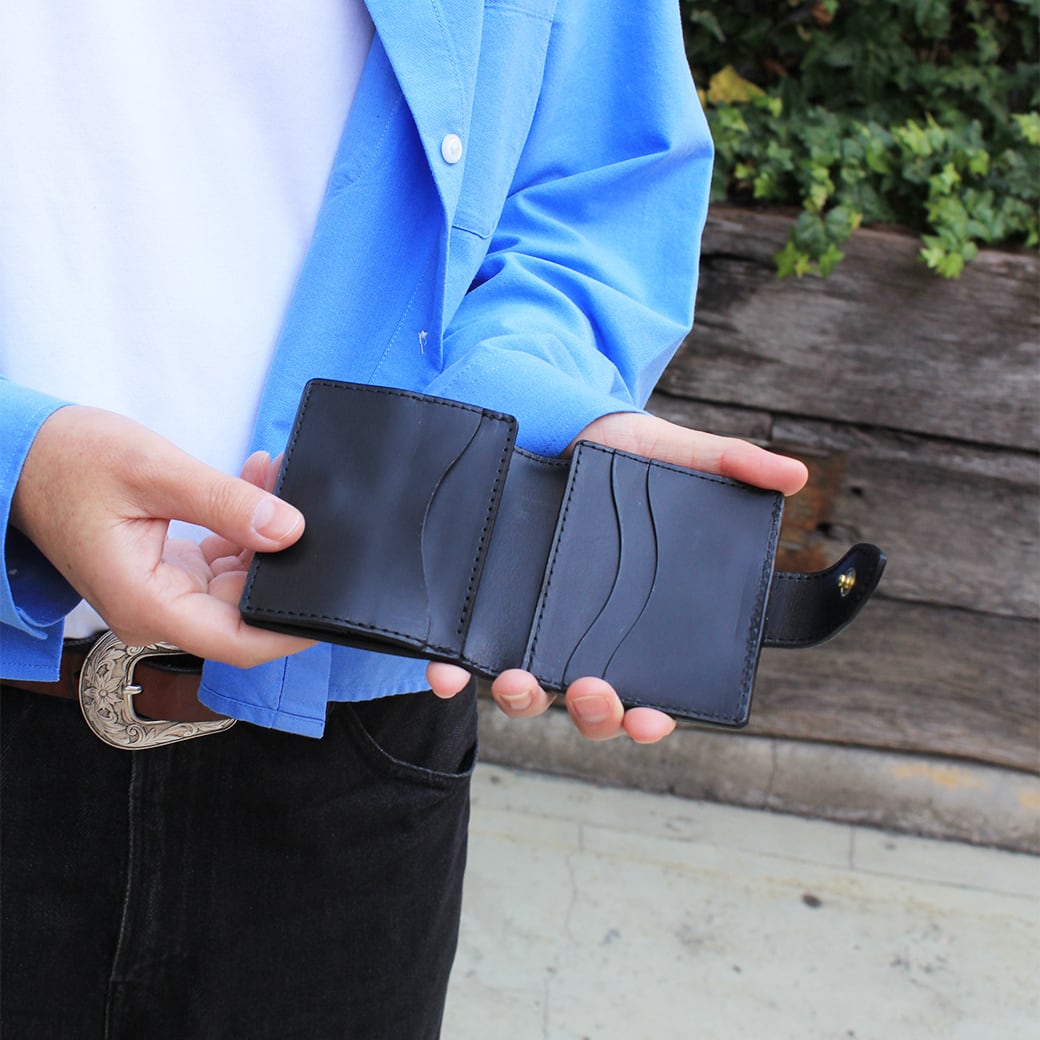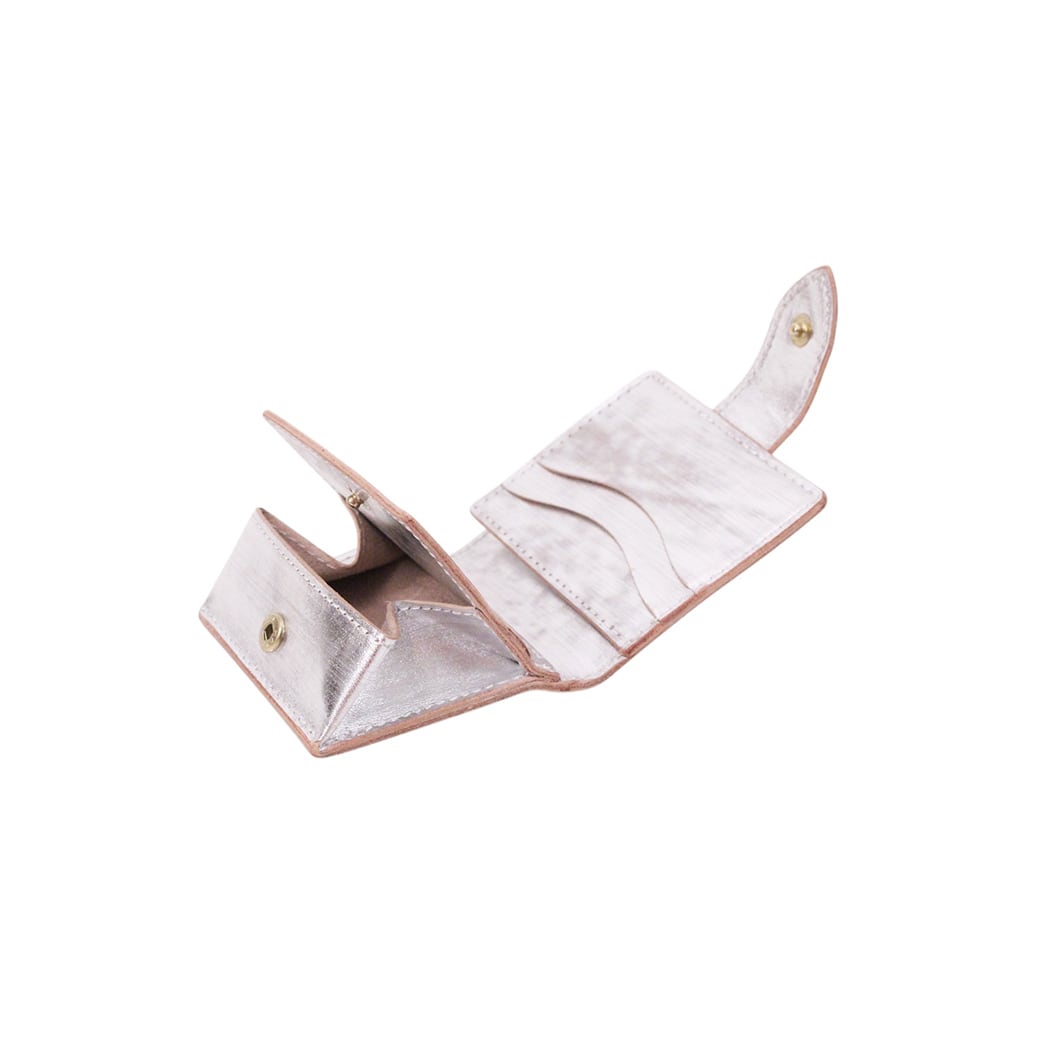 「正⽅形」をデザインのキーワードに仕上げた⼆つ折りのミニ財布です