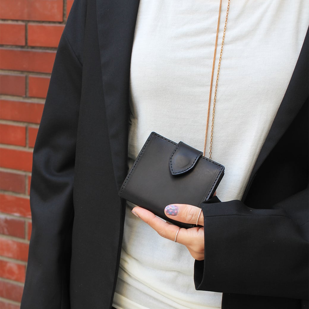 ⼥性の⼿にも収まりがいいので、ユニセックスで使えるミニ財布です