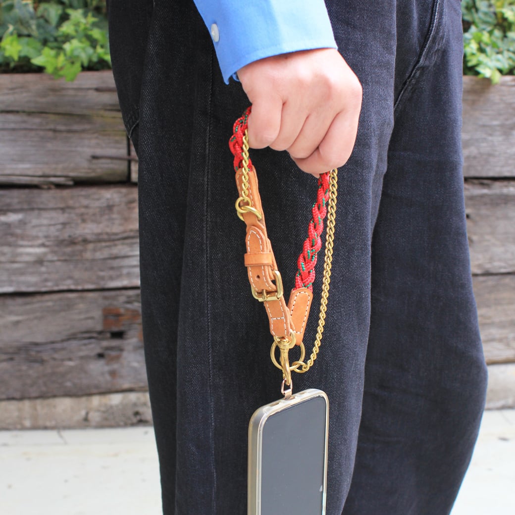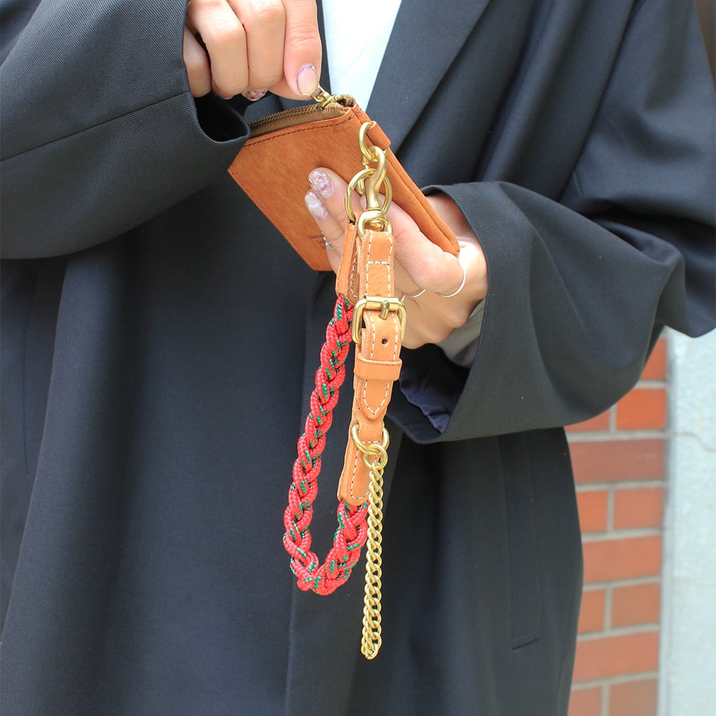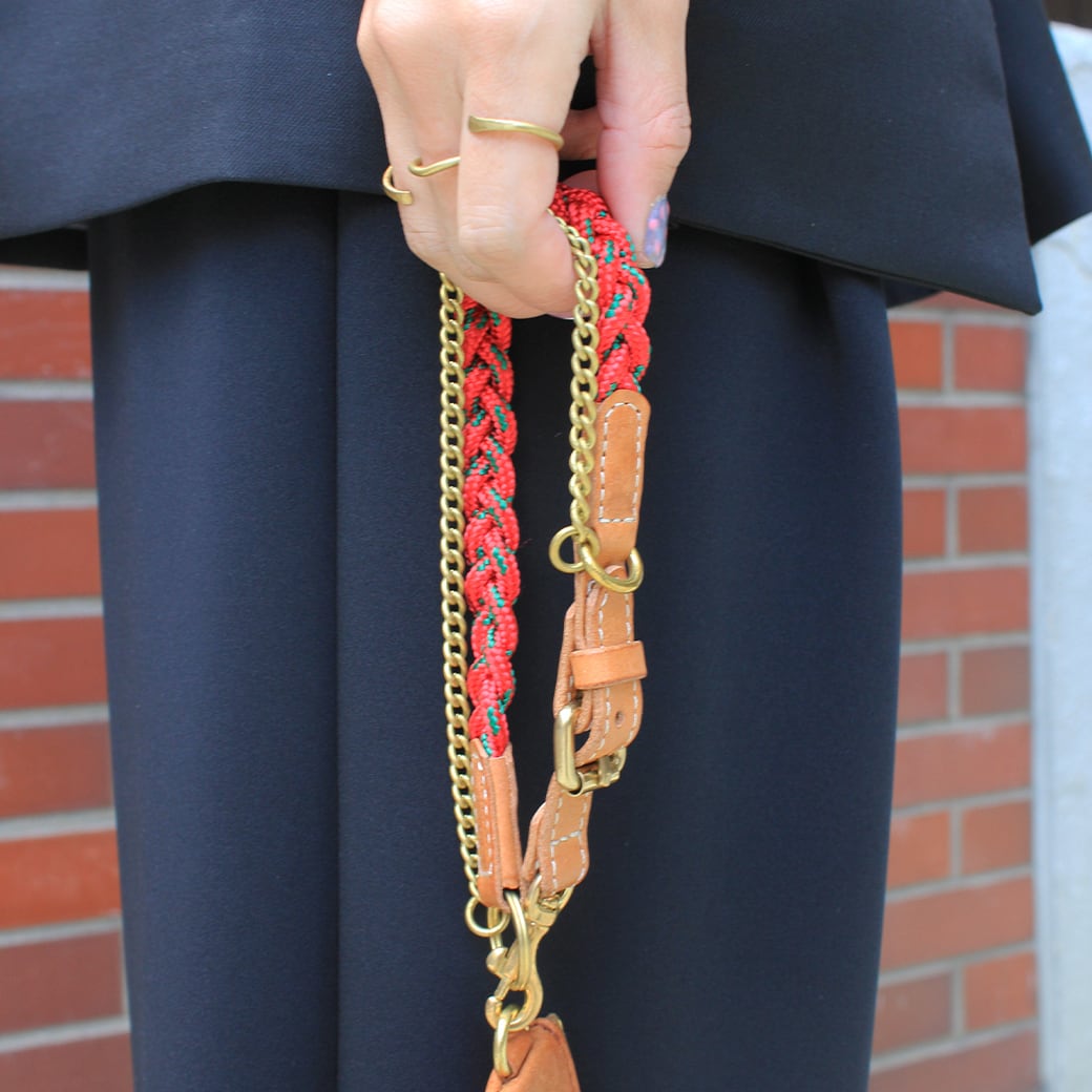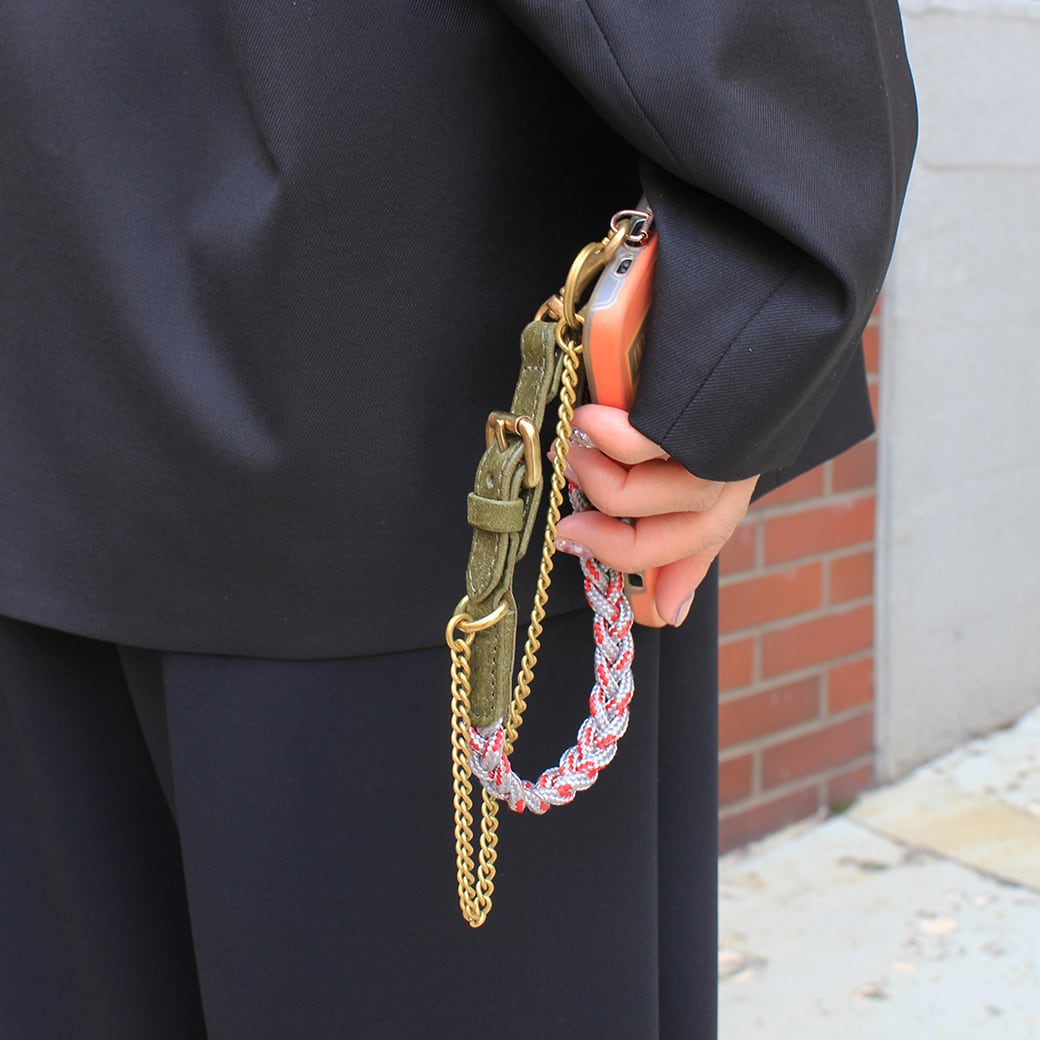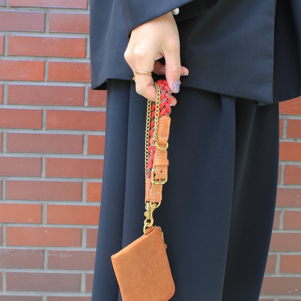 ひとつひとつ手編みで丁寧に結びあげているコードデザインにチェーンの組み合わせが、大人っぽくいろんなコーデネートに馴染んでくれます