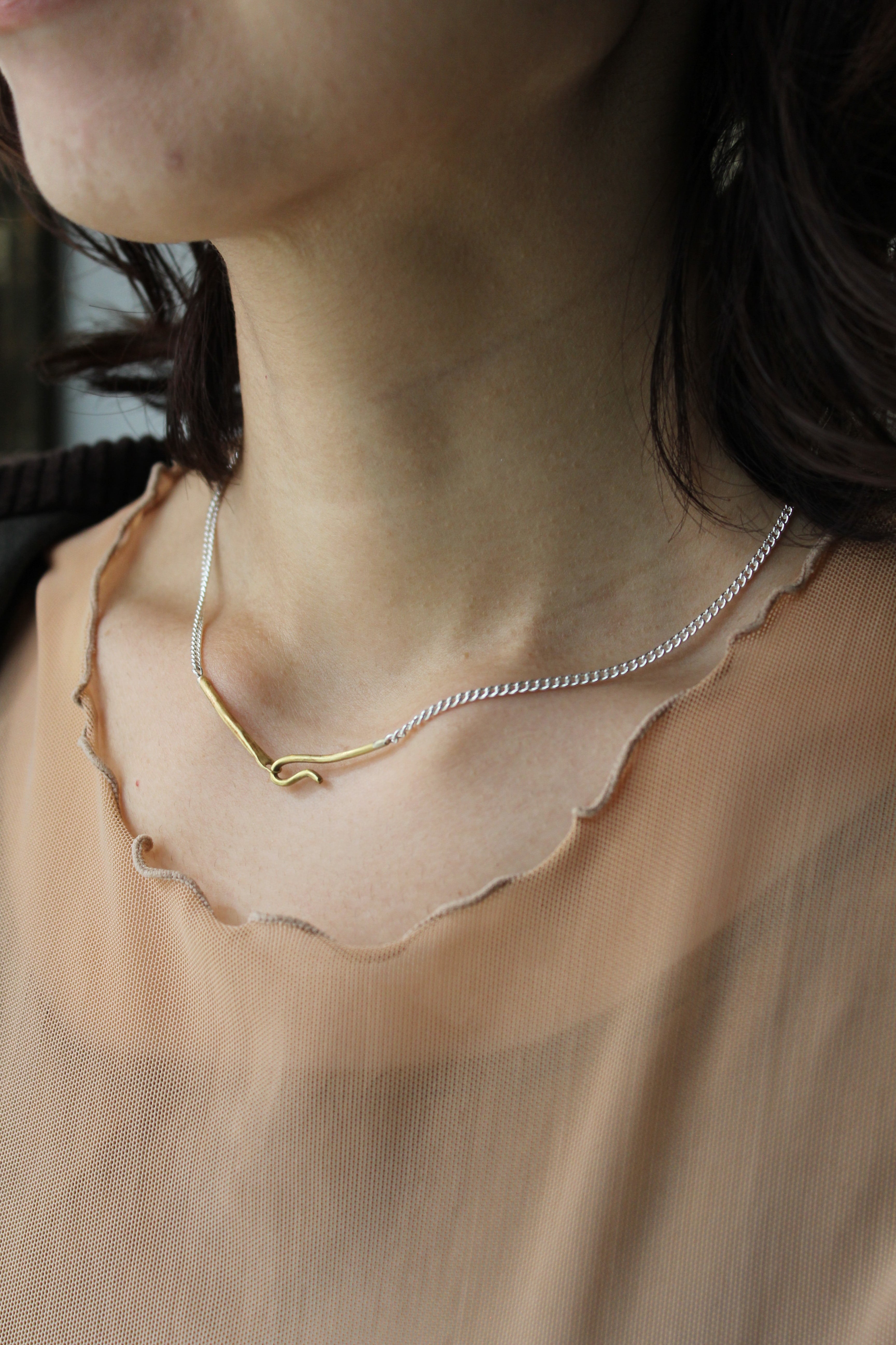 こちらの商品は、真鍮とシルバーの素材でできたネックレスです。
