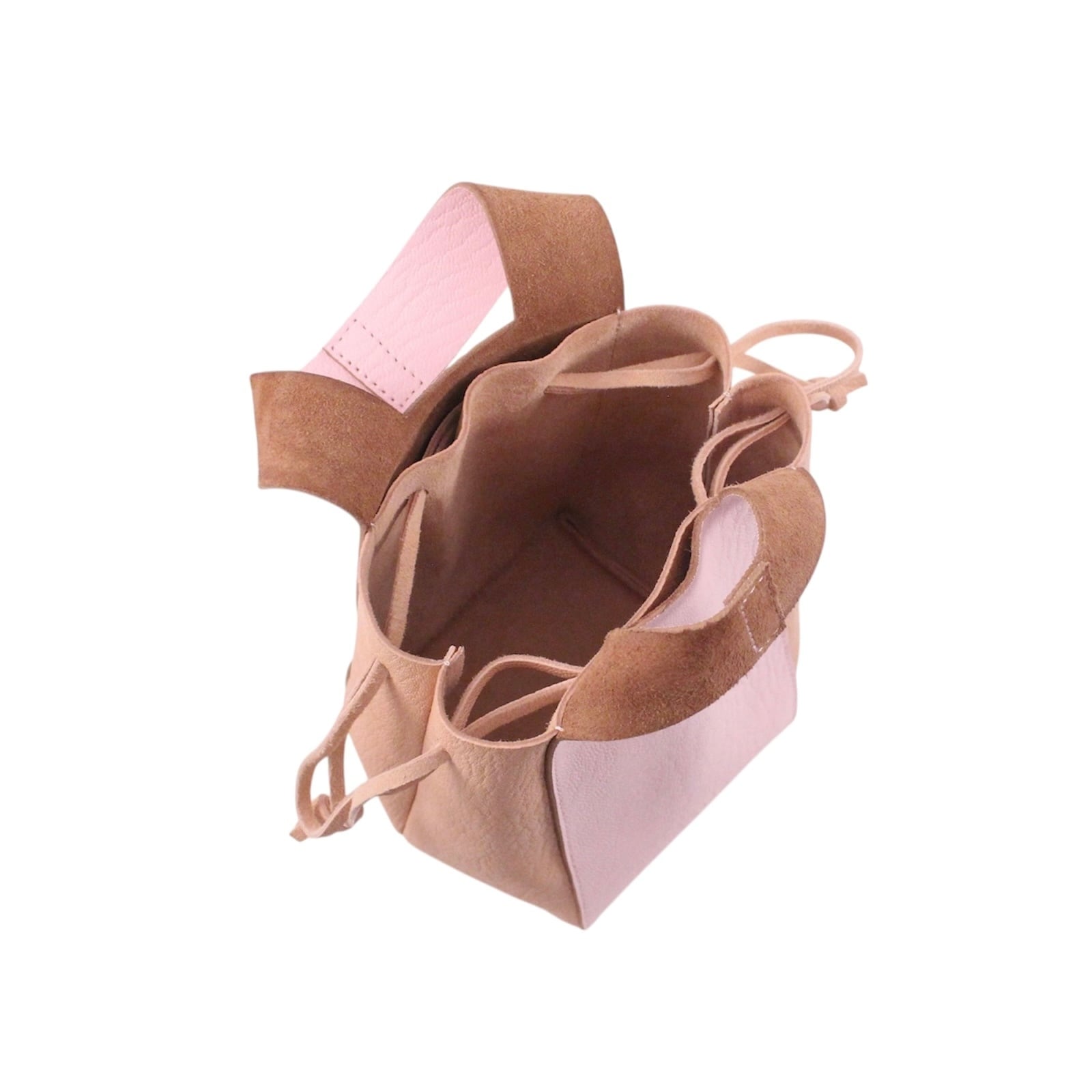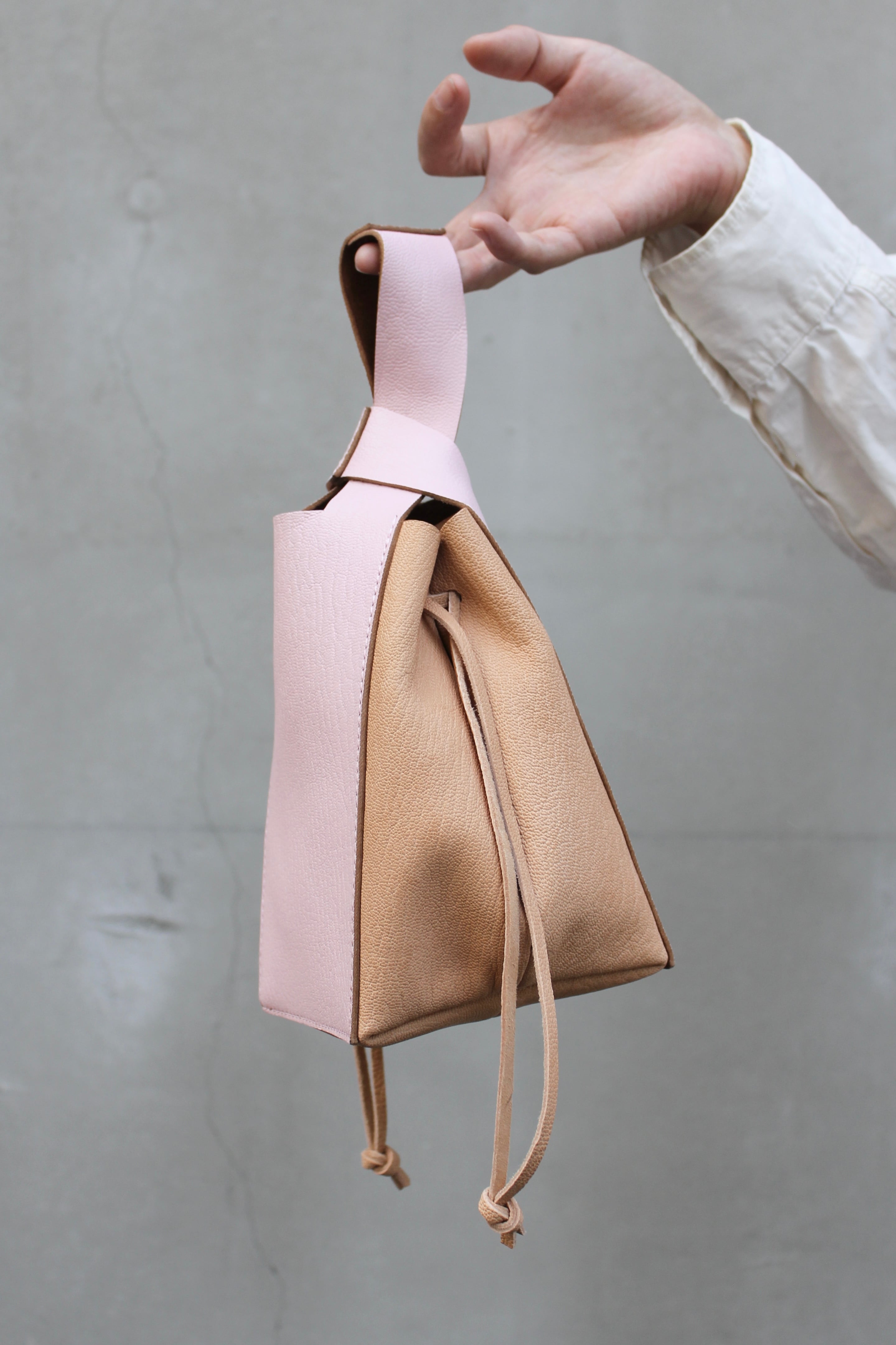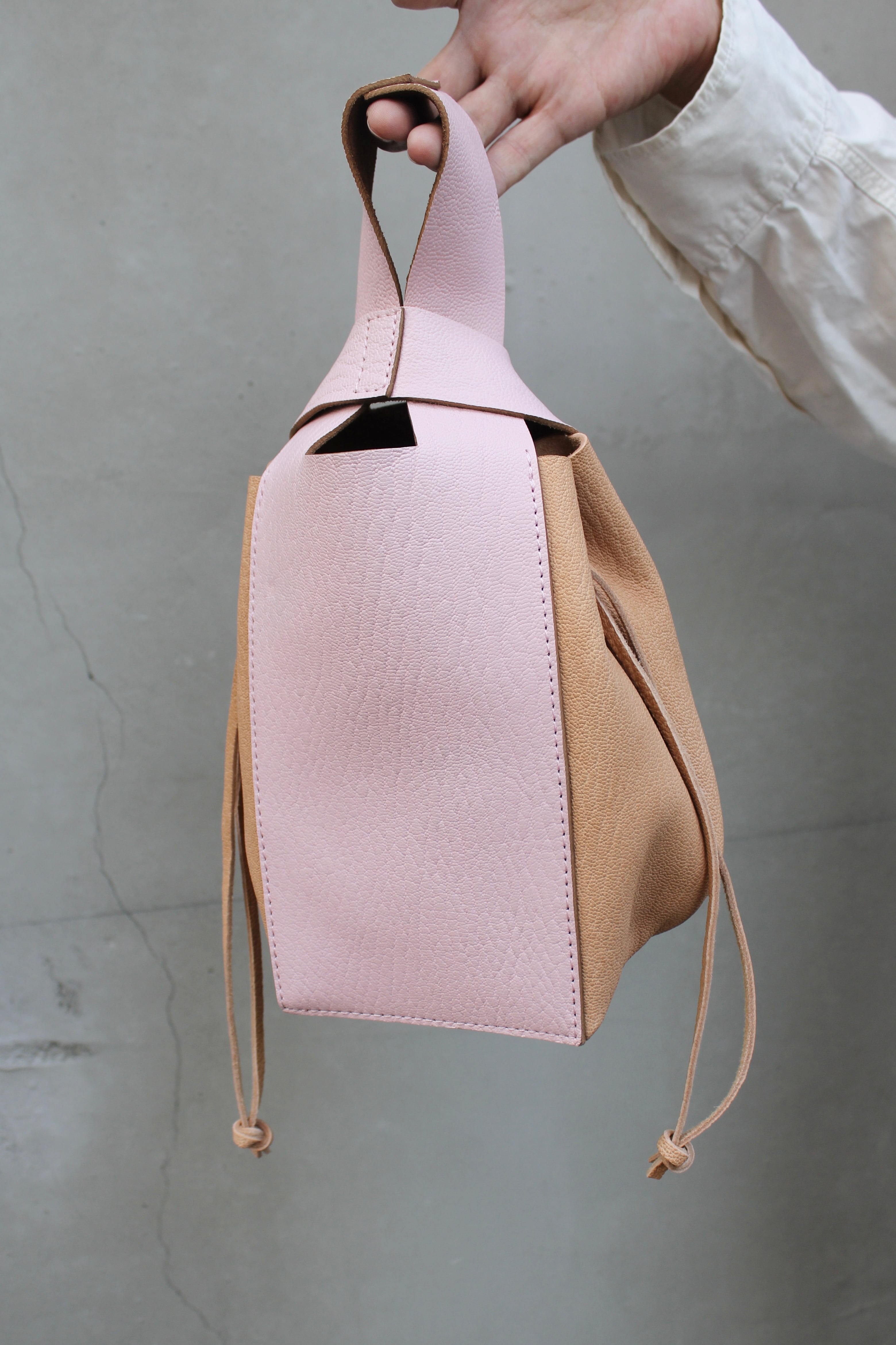 サイドのコードを絞ることで巾着特有の柔らかい丸みを出せます