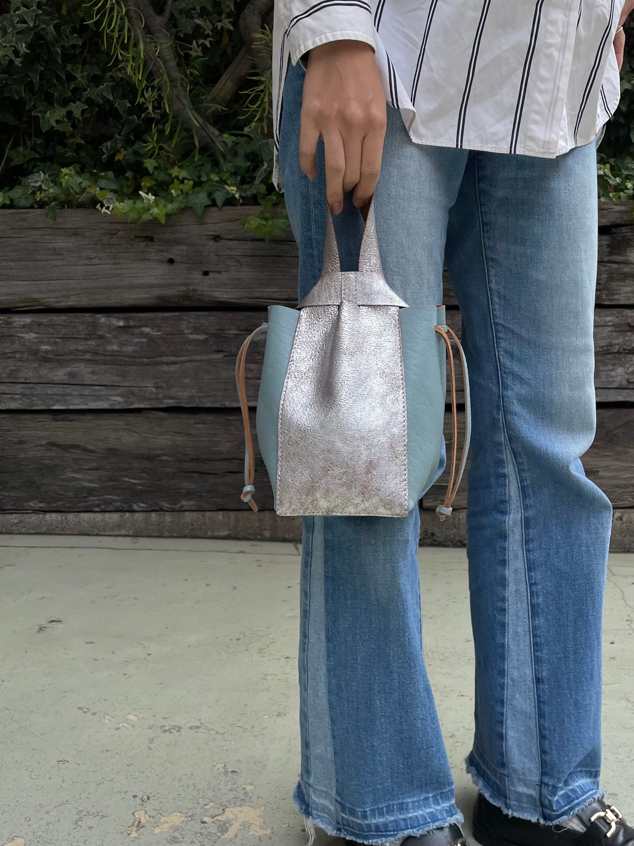 シルエットを変えられる、程よい抜け感のある巾着タイプのバッグです