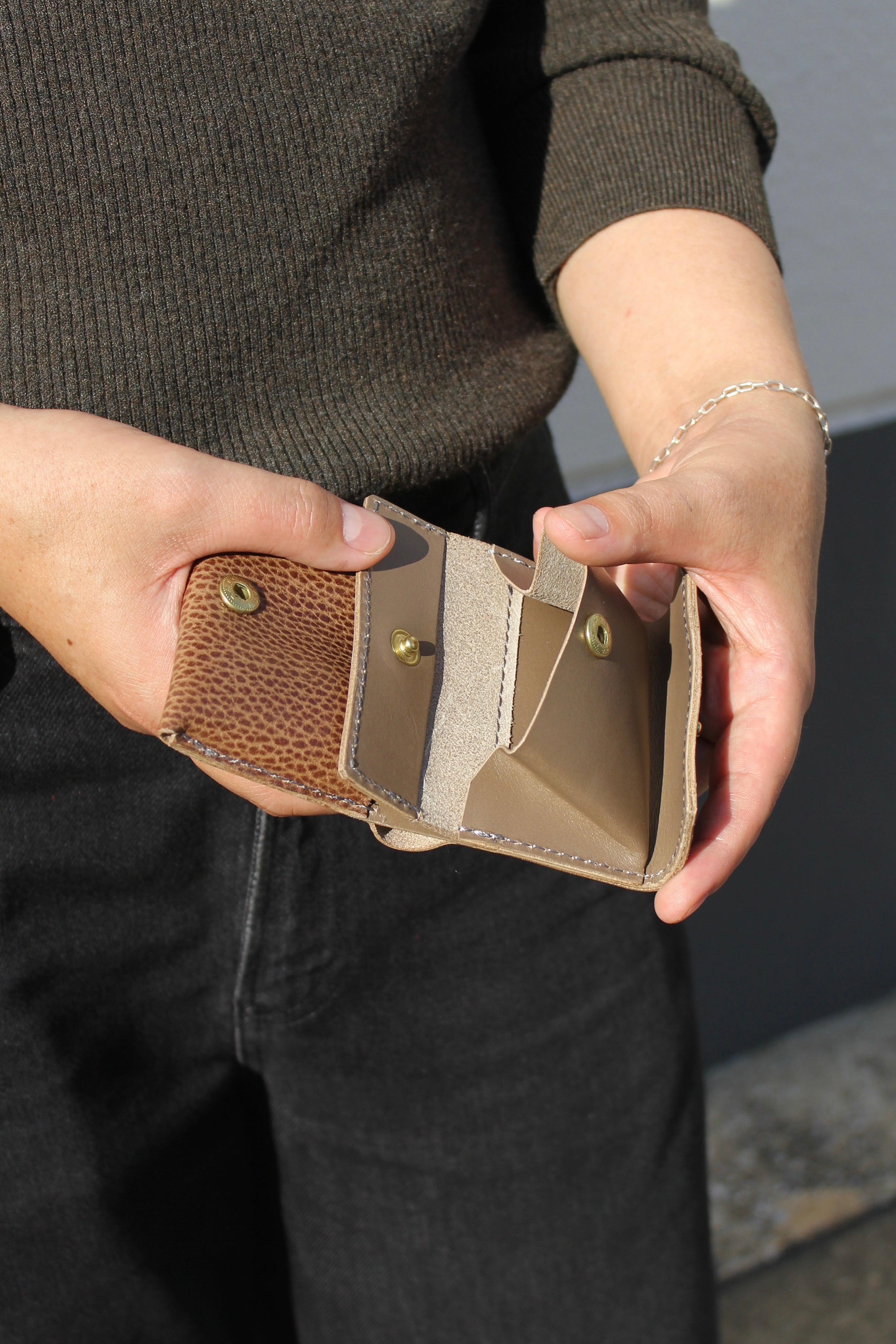 フタ同士が重ならないよう設計されているので、コンパクトながら厚みを抑えて、ミニマムに使えるサイフです
