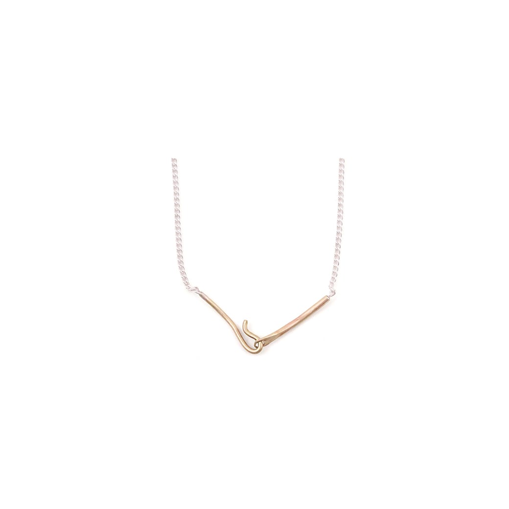 こちらの商品は、真鍮とシルバーの素材でできたネックレスです。