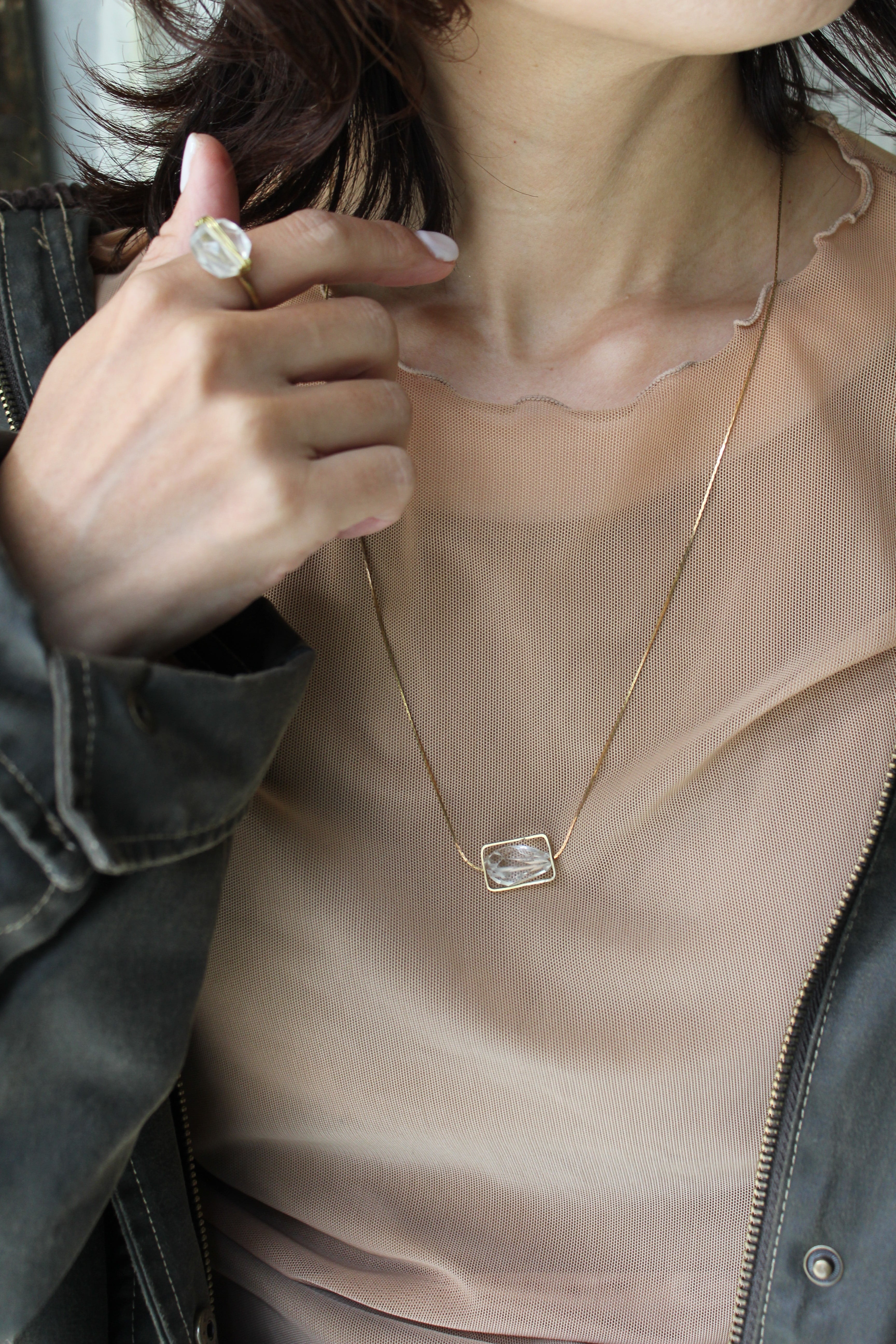 細いスネークチェーンにあえてむき出しのゴロンと動く石が特徴的です。