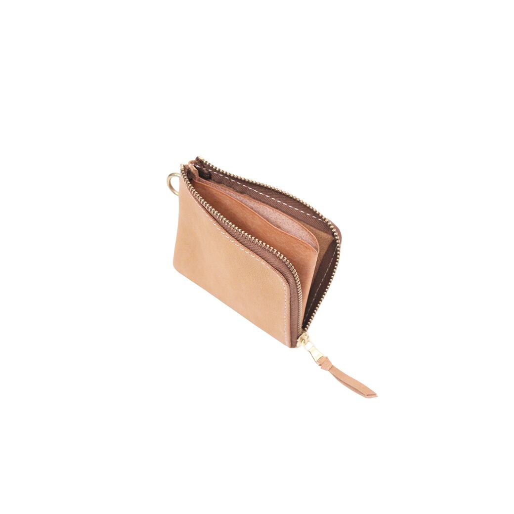 内側の中央に袋状の小銭入れが設けられていて、その両サイドにお札、カードを収納する仕様になっています。