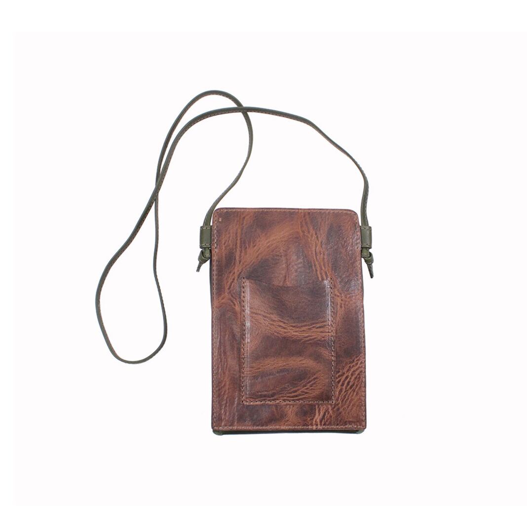 正面の革はシルエット以上にたっぷりと使用しているので、収納にゆとりがあります。