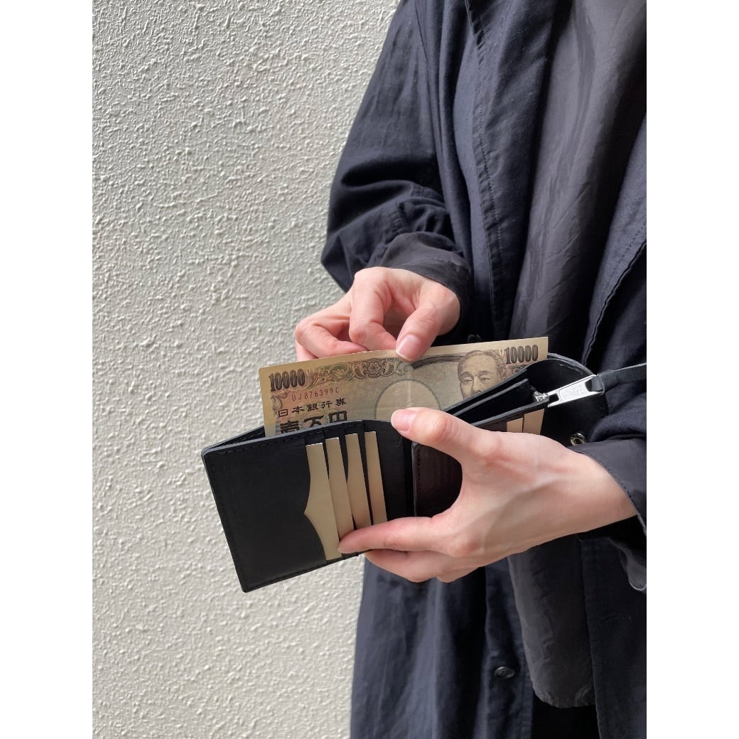 ⼩銭⼊れはL字のZIPでの開閉で、両サイドにマチをつけているので出し⼊れがしやすいです。