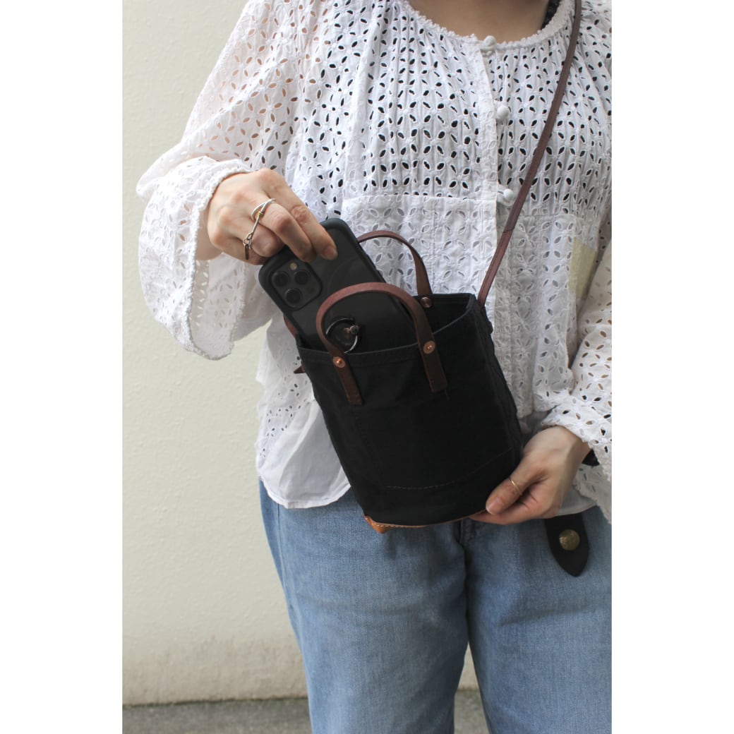 ハンドルがついているので、ショルダーだけでなく手持ちのミニバッグとしても使えます。