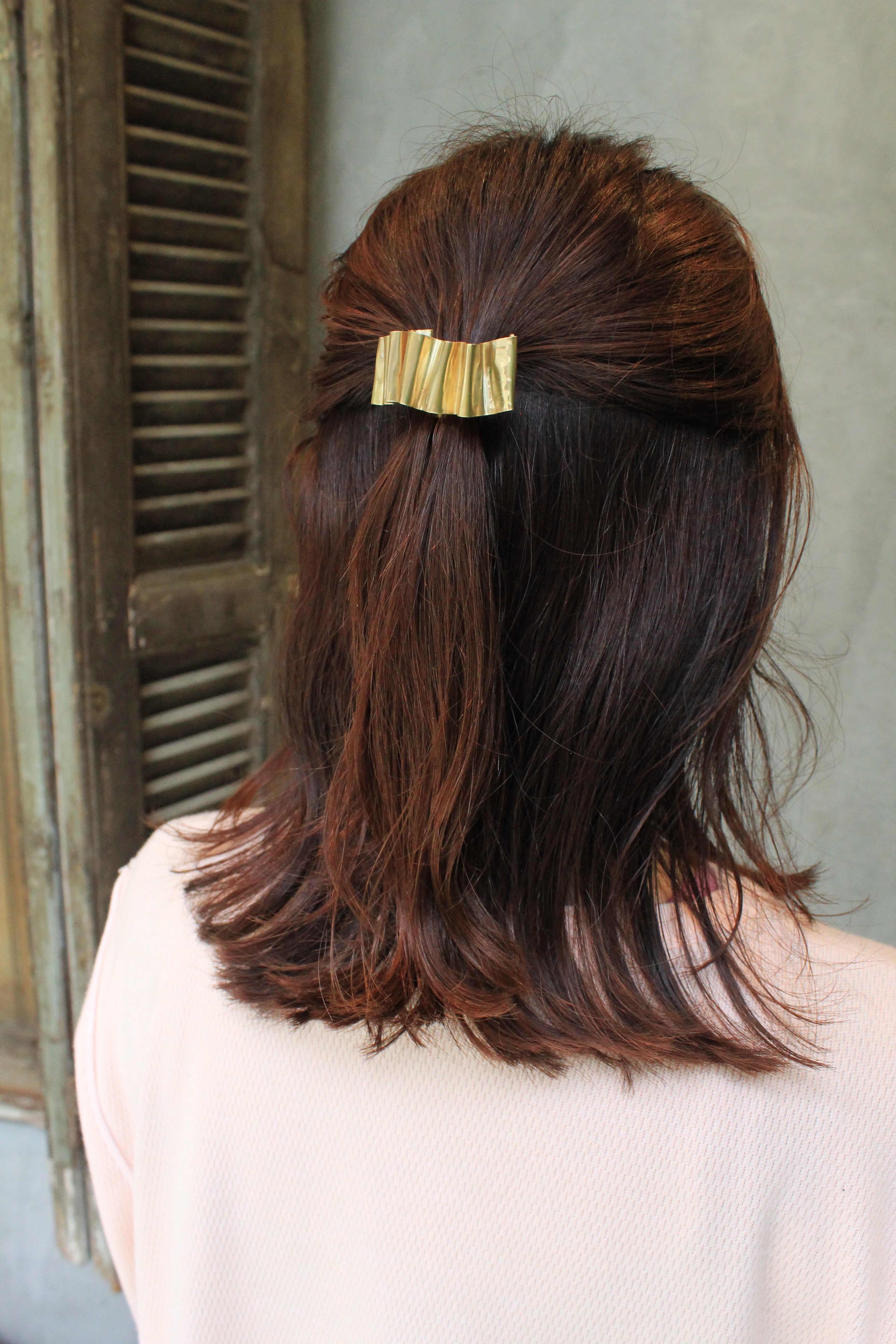 こちらの商品は、真鍮の素材でできたヘアクリップです。