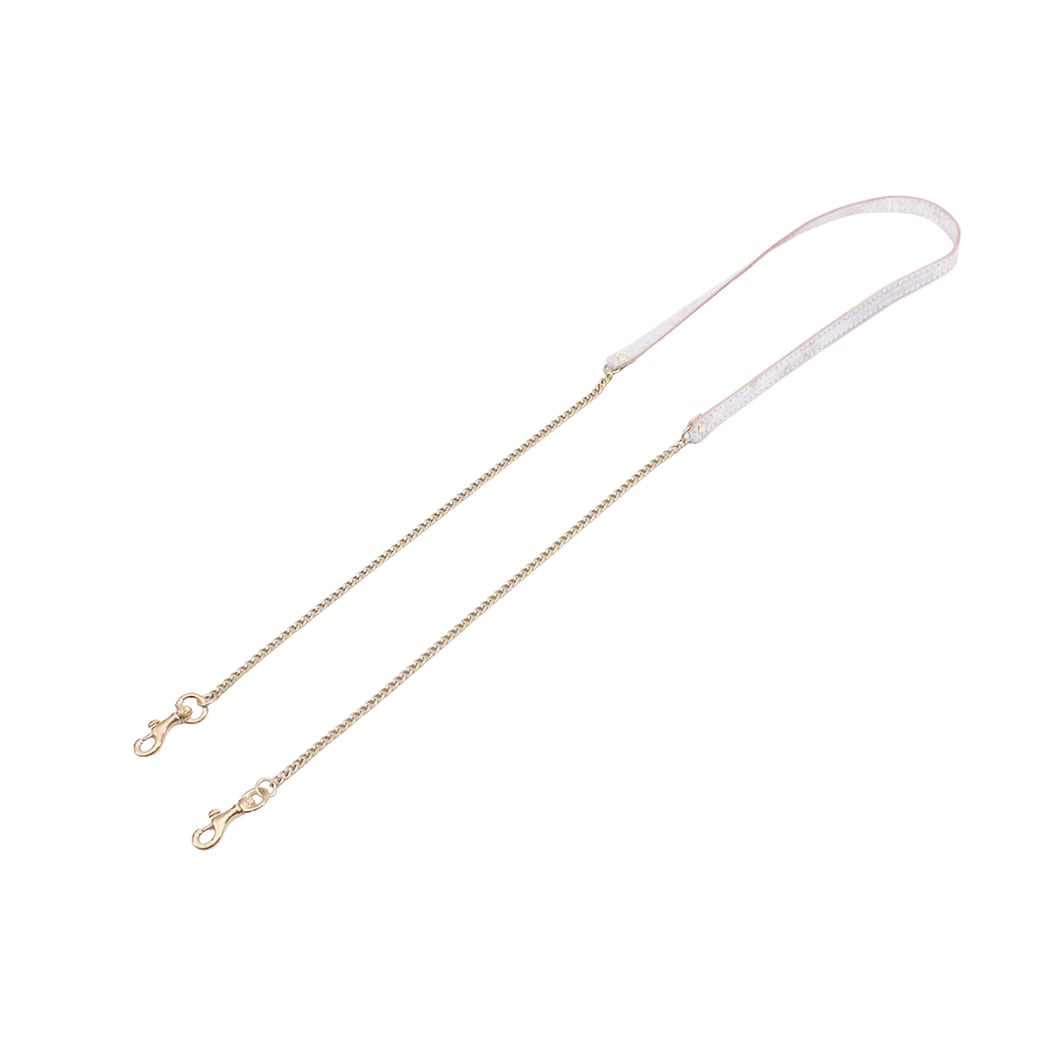 ショルダーにはチェーンをたっぷり使ってますが、肩や体への負担を考慮して肩に当たる部分にはレザーを使用しています。取り外しも可能です。